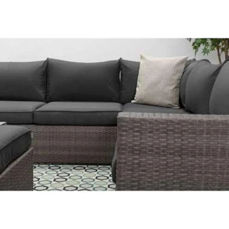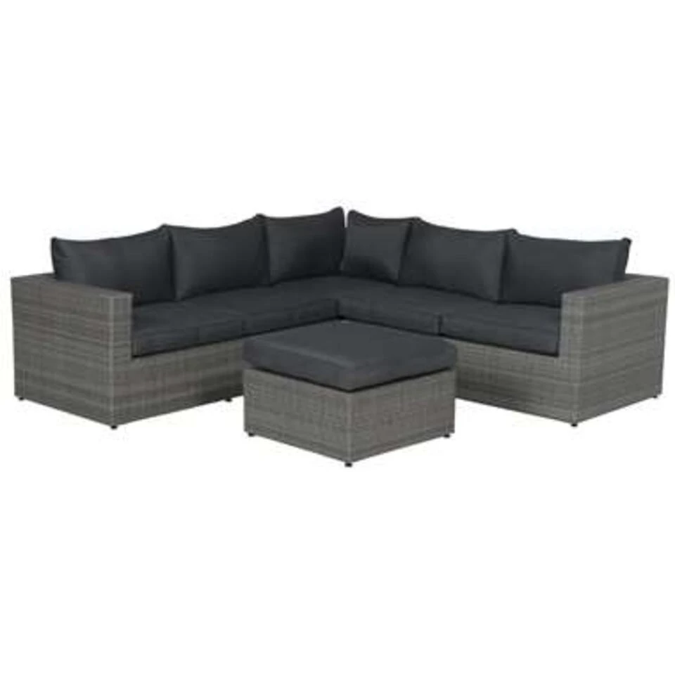 De Altea loungeset van het kwaliteitsmerk Garden Impressions is één van de meest populaire loungesets uit onze collectie. En dat is niet voor niets, want de Altea is comfortabel en duurzaam. Op deze ruime hoek loungebank geniet je van de warme zomerdagen, terwijl je heerlijk comfortabel op de bank zit of ligt. De populariteit van deze loungeset is vooral te danken aan de ruime afmeting, dikke comfortabele kussens en natuurlijk de aantrekkelijke prijs. Eigenlijk is het heel begrijpelijk dat de Altea loungeset één van de meest verkochte loungesets in de markt is! De Altea loungeset is gemaakt van een stevig weerbestendig aluminium frame met daaromheen hand gevlochten kwalitatief wicker vlechtwerk draad in de kleur organic grey. Dit wicker is gemaakt van een stevig kunststof waardoor de set zeer duurzaam is. Deze set bestaat uit twee open bankdelen, één hoek element, één losse lounge stoel en een voetenbank/hocker. De voetenbank/poef is ook te gebruiken als praktische tafel, gebruik dan één van de mooie aluminium dienbladen voor extra stabiliteit voor de glazen. Wil je voorkomen dat de losse bankdelen van elkaar af schuiven? Dan kun je deze gemakkelijk aan de onderkant van de set aan elkaar bevestigen door de meegeleverde clips te gebruiken. Helemaal compleet wordt de Altea loungeset door de comfortabele dikke zit- en rugkussens. De kussens zijn voorzien van een rits waardoor de hoezen gemakkelijk met de hand kunnen worden gewassen. De kussens zijn niet 100% waterdicht, maar zijn wel voorzien van een waterafstotende coating. Dit is vooral erg praktisch als er bijvoorbeeld op het kussen wordt gemorst met drinken. Je veegt het vocht er namelijk gemakkelijk weer af. Na gebruik kunnen de kussens opgeborgen worden in de schuur of in een kussenbox. De afmetingen van deze setopstelling zijn: L 240 x B 240 x H 64 cm. De hocker is 73 cm lang, 73 cm breed en 40 cm hoog. Een uitgebreide collectie loungesets vind je binnen de cateogrie tuinmeubelen. Tuinmeubelen van verschillende mooie merken.