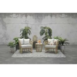 Het wicker vlechtwerkdraad is gemaakt van een hoogwaardige kwaliteit kunststof en is hand gevlochten. De combinatie zorgt gegarandeerd voor een kwalitatief hoogwaardige lounge dining set. De lounge dining set wordt geleverd inclusief polyester loungekussens. De loungekussens zijn niet waterdicht, wel zijn ze voorzien van een waterafstotende coating.