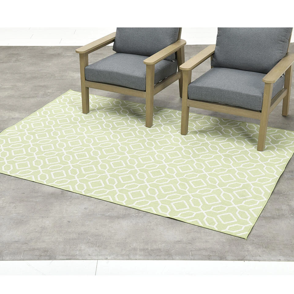 Hip en duurzaam! Het buitenkleed Gretha Eclipse groen is niet alleen een vrolijke aanwinst voor je tuin, maar ook een verantwoorde keuze.