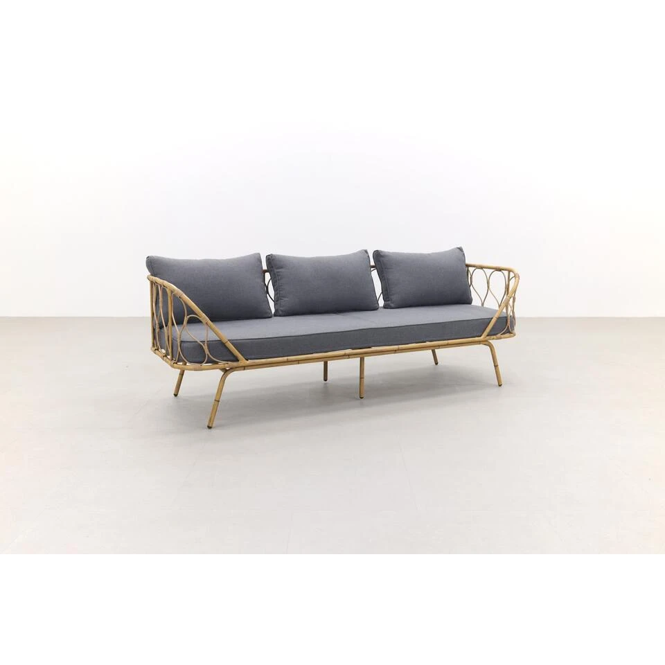 Met deze stijlvolle loungebank in jouw tuin waan je jezelf in Aziatische sferen. Het frame van de Cleopatra loungebank heeft een bamboe look en is aan de zijkanten sierlijk afgewerkt. Geniet van een heerlijke cocktail in deze comfortabele loungebank. Heerlijk met vrienden genieten van een gezellige borrelavond of gewoon even een rust momentje voor jezelf. Met de Garden Impressions Cleopatra bank kan het allemaal. De loungebank is geschikt voor 3 personen en is uitgerust met comfortabele kussens. Zie jij deze eyecatcher al helemaal in jouw tuin staan? Bestel ‘m dan direct online. Â
