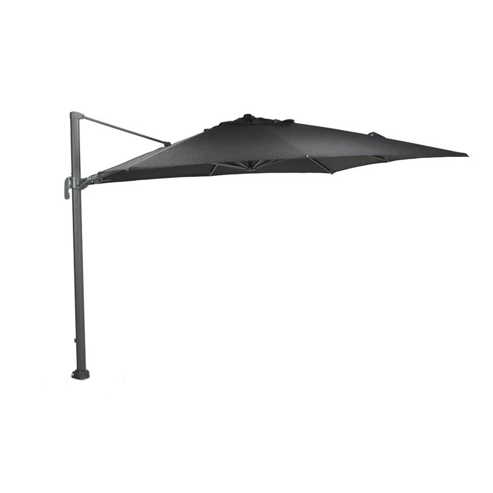 Echt helemaal kunnen genieten in de tuin? Dan is de Hawaii big poledonker grijs/zwarte parasol van kwaliteitsmerk Garden Impressions onmisbaar in jouw tuin. Iedereen heeft af en toe de behoefte om de verkoeling van de schaduw op te zoeken met het mooie weer. De Hawaii big pole parasol is gemaakt van goede kwaliteit materialen. De parasol beschikt over een 250 grams polyester doek wat zorgt voor bescherming tegen de zon. Verkleuring van het doek door de zon is na verloop van tijd niet tegen te gaan. Bovendien is het doek voorzien van een brandwerende PA-coating en een windvanger, zodat de wind goed weg kan als deze onder de parasol komt. Het doek is spatwaterdicht en heeft een afmeting van 350×350. Het stevige dikke aluminium frame is voorzien van een hoogwaardige kwaliteit poeder coating. Deze coating is dusdanig sterk dat het kras- en stootvast is. De zweefparasol Hawaii big pole van Garden Impressions is voorzien van een dikker frame, wat zorgt voor nog meer stevigheid voor als de parasol in een tuin staat waar doorgaans meer wind staat. De baleinen van de zweefparasol zijn voorzien van doekspanners, zodat het doek mooi strak wordt gehouden. De Hawaii big pole parasol hoef je in principe niet te verplaatsen, want vanuit welke positie er schaduw nodig is. De Hawaii big pole parasol zet je gemakkelijk schuin, door middel van het handvat schuif je het doek in verschillende standen schuin tot bijna 90 graden. Daarnaast is de parasol ook horizontaal te kantelen. Bovendien kun je de Hawaii big pole parasol ook nog eens 360 graden rond draaien. Aluminium heeft als voordeel dat het onderhoudsvrij is, wanneer het aluminium vies is geworden door bijvoorbeeld opspattend regenwater kun je dit eenvoudig schoonmaken met een sopje van groene zeep en een zachte doek. Het doek van je parasol kun je het beste schoonmaken met een speciale Eden Outdoor doek reiniger. Wil je het doek beschermen tegen schimmel- en weerplekken, dan is hiervoor ook een product van Eden verkrijgbaar. Om het doek langer mooi te houden is het aan te raden om het product binnen op te bergen. Een parasol kan je daarnaast eenvoudig goed beschermen met een parasol beschermhoes als deze niet wordt gebruikt.