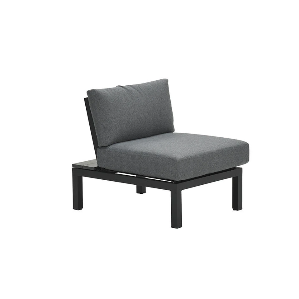 Wil jij een extra zitplek toevoegen aan de Lena loungeset? Kijk dan eens naar een Lena midden element. Deze Lena midden element is vervaardigd uit een aluminium frame met een matte poedercoating in de kleur donker grijs. Deze stevige coating zorgt ervoor dat het frame in principe kras- en stootvast is. Aluminium heeft als groot voordeel dat het een onderhoudsvriendelijk product is. Daarnaast is aluminium vrij licht en kan het midden element gemakkelijk tussen de Lena loungeset geplaatst worden. De comfortabele kussens zijn niet 100% waterdicht, maar zijn wel voorzien van een waterafstotende coating. Dit is vooral erg praktisch als er bijvoorbeeld op het kussen wordt gemorst met drinken. Je veegt het vocht er namelijk gemakkelijk weer af. Na gebruik kunnen de kussens opgeborgen worden in de schuur of een mooie kussenbox. Wil je de kussens met de hand wassen, dan is dit mogelijk, want de kussenhoesjes zijn voorzien van een rits. Het Lena element wordt ongemonteerd geleverd. Na ontvangst dient alleen de rugleuning nog gemonteerd te worden op het frame. Dit is op een gemakkelijke manier zelf te doen door de bijgeleverde montage materialen. De aluminium rugleuning van het midden element is niet te verstellen. Het Lena midden element wordt geleverd in één kartonnen doos. Het Lena midden element kan gebruikt worden als lounge fauteuil, maar je kan de Lena loungeset ook verlengen aan één van de zijde met dit element. De Lena serie is verkrijgbaar in diverse mooie kleurstellingen.