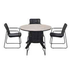 Op zoek naar een ronde tuinset met een retro uitstraling? Dan is dit de juiste tuinset voor jou! Deze Margriet diningstoelen zorgen voor die echte retro look. Dit komt door het wicker dat voor deze stoel gebruikt is in de natuurlijk rotan kleur. Hierdoor krijg je echt het gevoel van vroeger! De Fiesta tuintafel maakt het plaatje compleet met haar onbehandelde teakhouten tafelblad en donkere frame. Doordat de doorsnede van deze tafel 90 cm. is past deze tuinset ook in de kleinere tuin of terras!Â