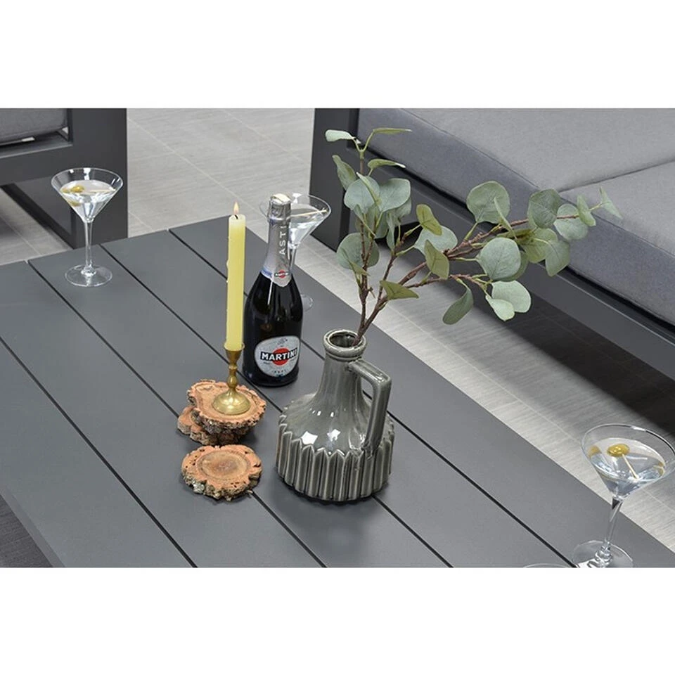 De lounge tafel is volledig gemaakt van aluminium met een stevige coating. De lounge tafel is vervaardigd uit een onderhoudsvrij en weerbestendig aluminium frame met een stevige poedercoating.
