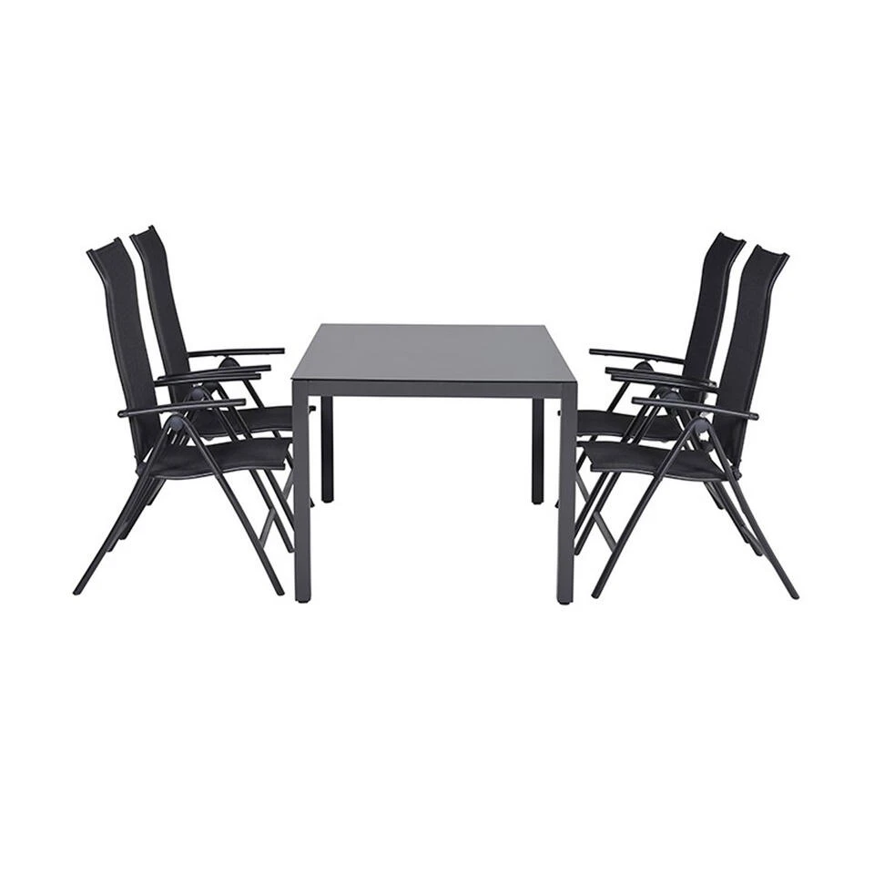 Op zoek naar een comfortabele tuinset? Deze vijfdelige tuinset van kwaliteitsmerk Garden Impressions is van alle gemakken voorzien. De tuinset bestaat uit vier Santana verstelbare tuinstoelen en een Palmas tuintafel van 160 bij 90 cm. De Santana verstelbare tuinstoel is een heerlijk relaxte stoel. Zo kun je heerlijk actief aan een tafel zitten met deze, maar ook heerlijk onderuit zitten en genieten van een goed boek in de zon. De rugleuning van deze stevige verstelbare stoel zet je met gemak in de gewenste stand naar achteren. De Palmas tafel is een goede keuze. De Palmas tafel heeft een uitstekende prijs-kwaliteit verhouding. Van deze tafel heb je gegarandeerd jarenlang plezier.