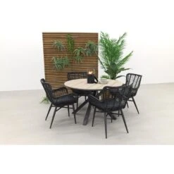 GI Margriet – Zwart / Taste Lano Teak 240 Cm. – 7-delige Tuinset